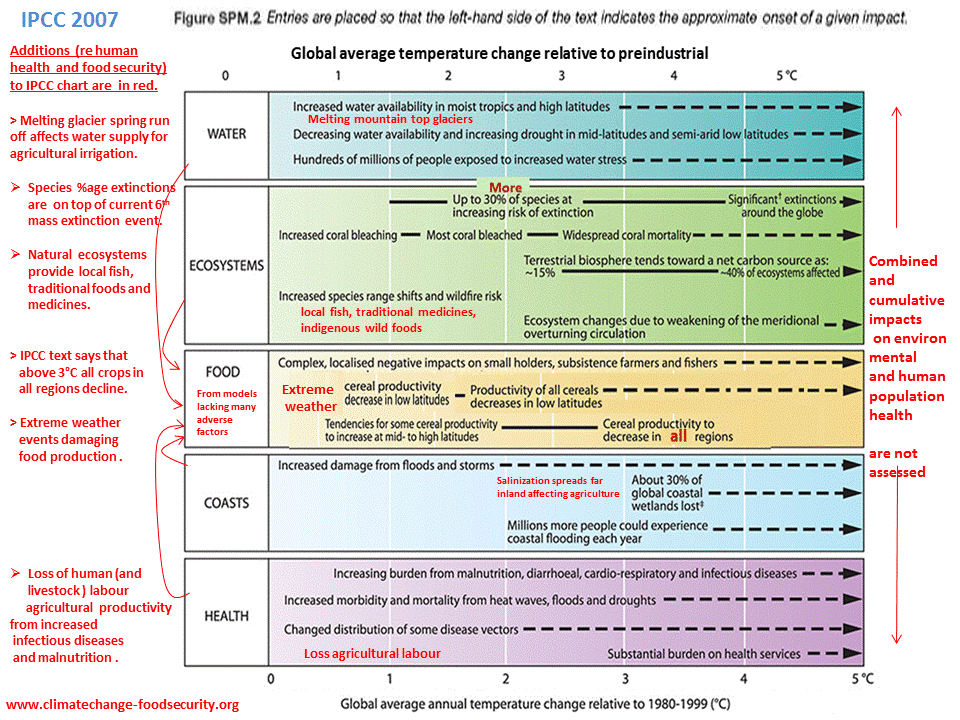 The IPCC assessment on food relies on climate crop models. In addition to the the food production losses by the few agricultural changes that are captured by the models, the impacts in the above chart each and all added to further crop losses.