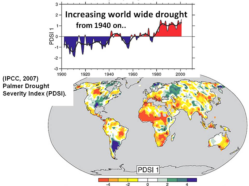 Global climate change will take progressively more land out of food production as temperatures increase. There is an established trend of increasing global droughts since 1860 and there is total agreement that under increased global warming droughts will increase.