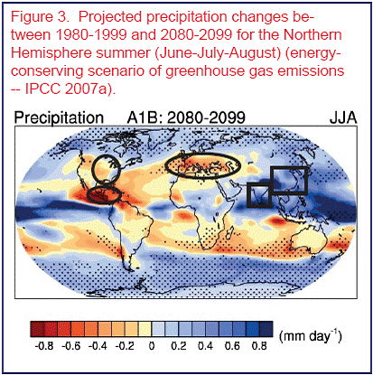 The IPCC presentation has circled in black the world's best food producing regions that will be hit by increased dryness and droughts.