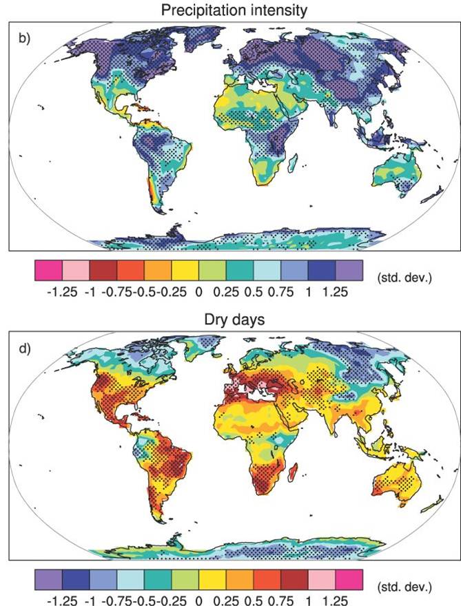 Change in wet and dry days mid A1B scenario 2000 to 2080.